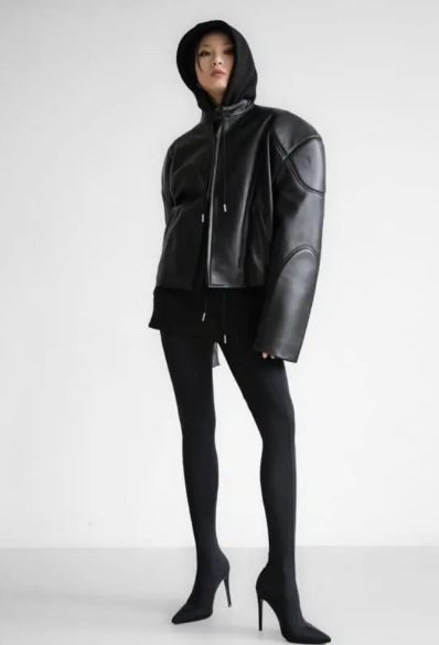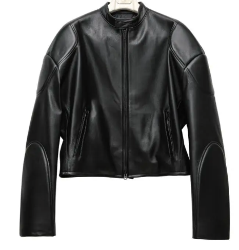 This is 100% lambskin leather. This item is oversized and fits all body types. A timeless leather jacket that will always be on trend...
